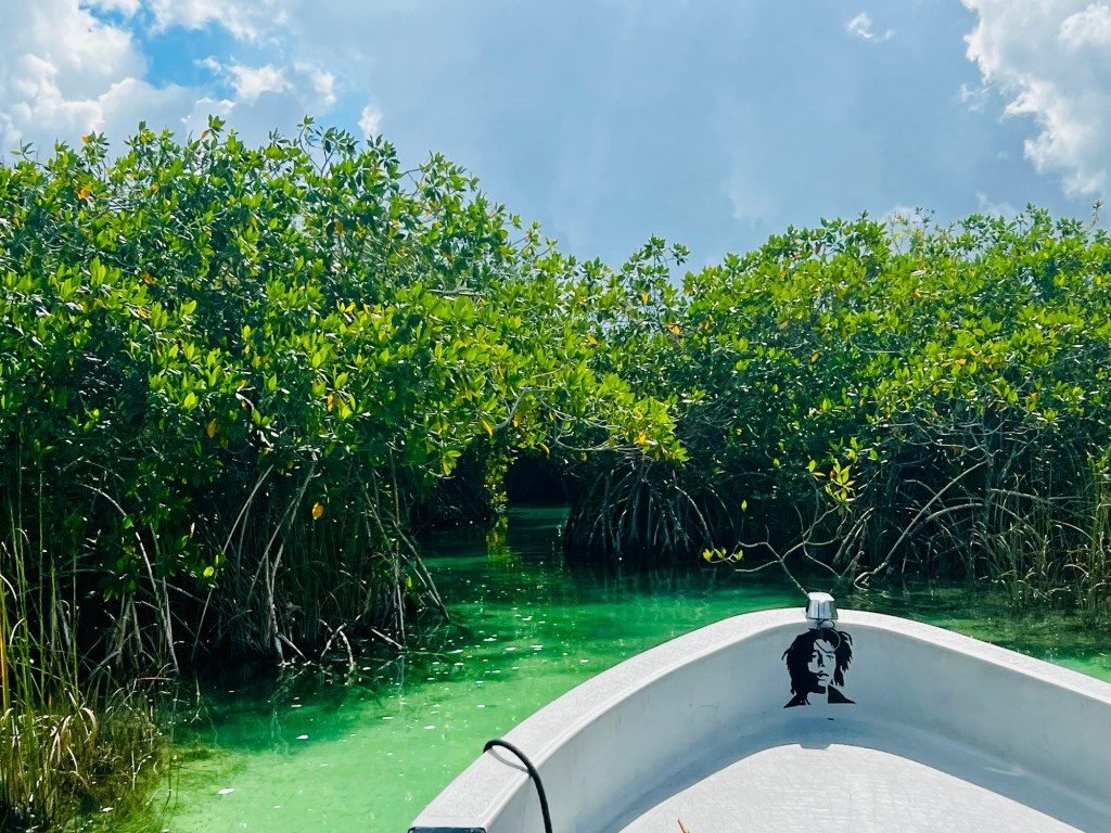 Heading across one of the Si’an Kaan Biosphere Lagoons