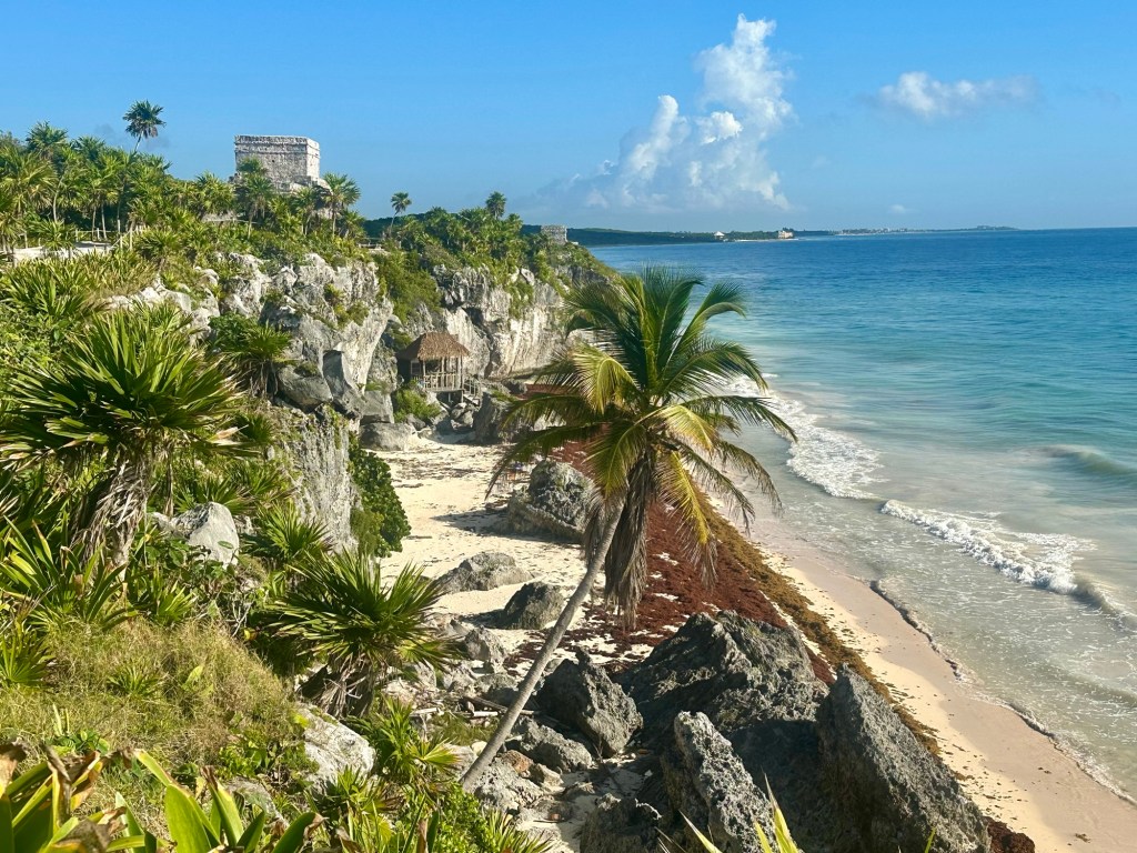 Tulum Mayan Ruins Saturday morning saw our driver, Miguel C, arrive at 10:30 for the approximately 2 hour-ish drive to Tulum on the Caribbean coast. A smooth ride followed through the now ‘standard’ boring Yucatan roadside low jungle scenery.