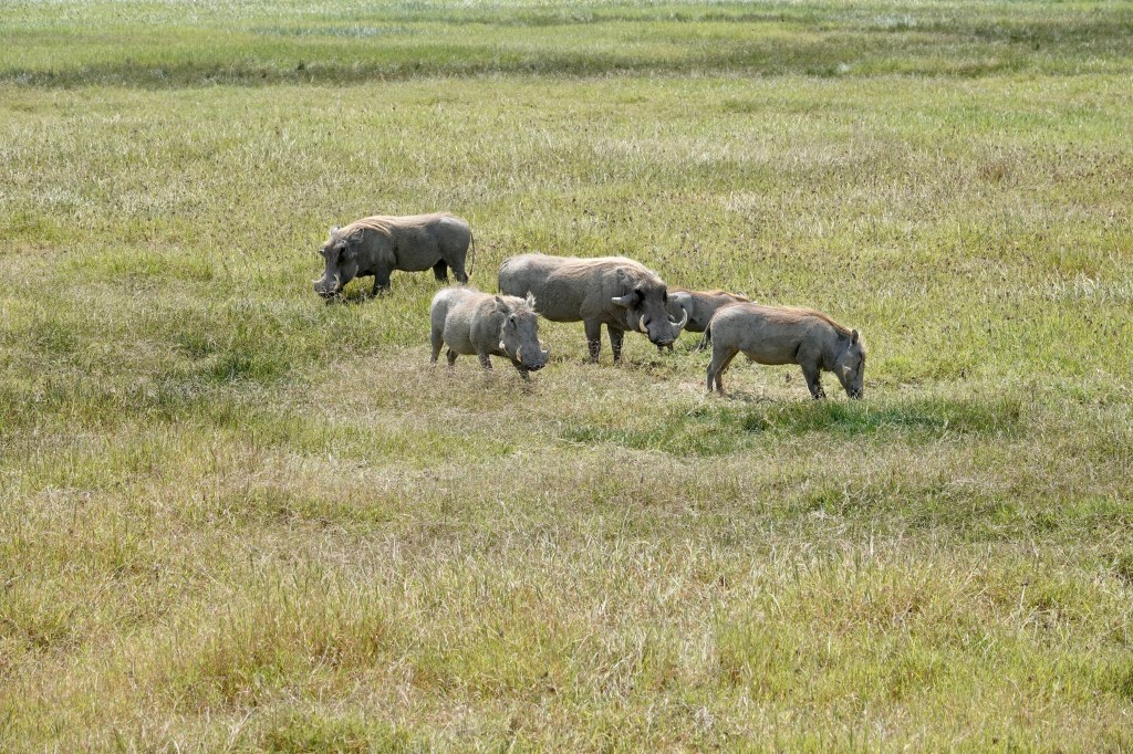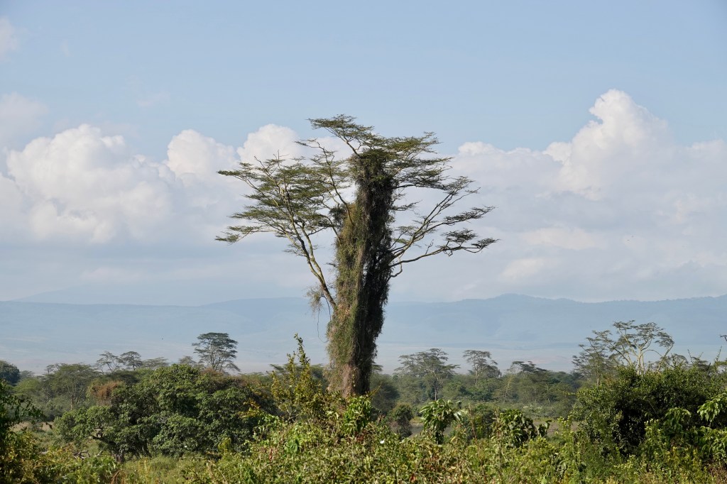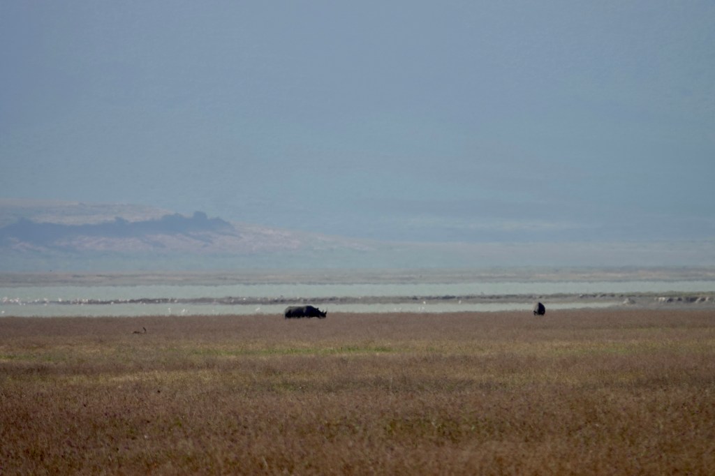 Typical view in the centre of the craterThe two dark objects are Black RhinosThis tree was unique The cloud ‘table cloth’ that endured on the crater rimA Hippo tanning – a strange sight in the middle of the day as they are normally submerged for most of the dayFlamingoThomson’s Gazelle and fawnCape Buffalo sentries in the Eastern foothills Grey Crowned Cranes and chicksWarthogs doing their thing
