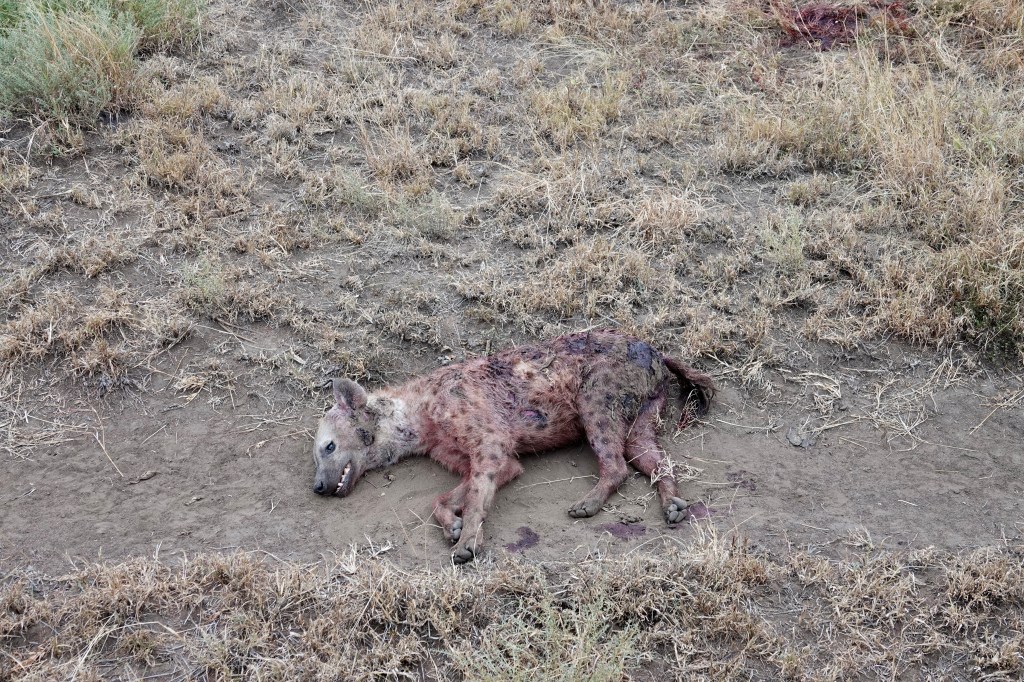 We also came across a lioness on a baby Zebra kill. She was joined by a pair of black backed jackals scavenging. And over watching everything and looking ‘anxious’ was a lone Hyena. When we moved in closer we found out why – the lioness had also killed another Hyena that came too close. Definitely no love lost between Lion and Hyena.