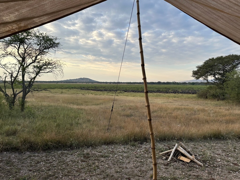The view from our tent at Asanja… more wildebeest on the edge of the wetland