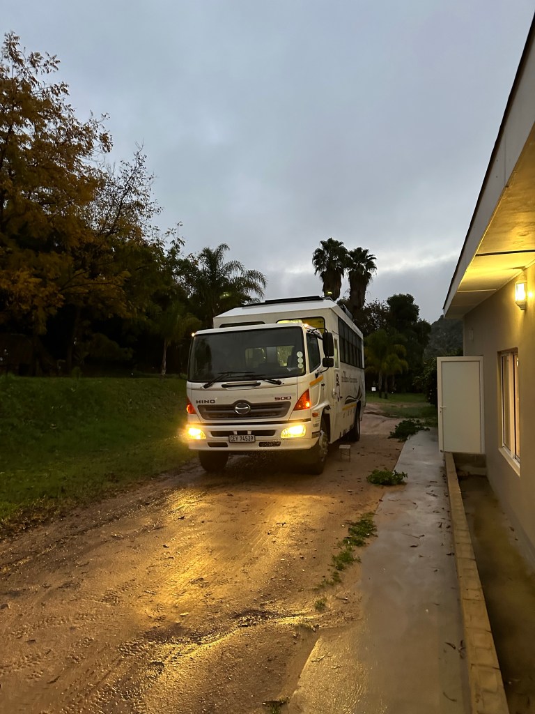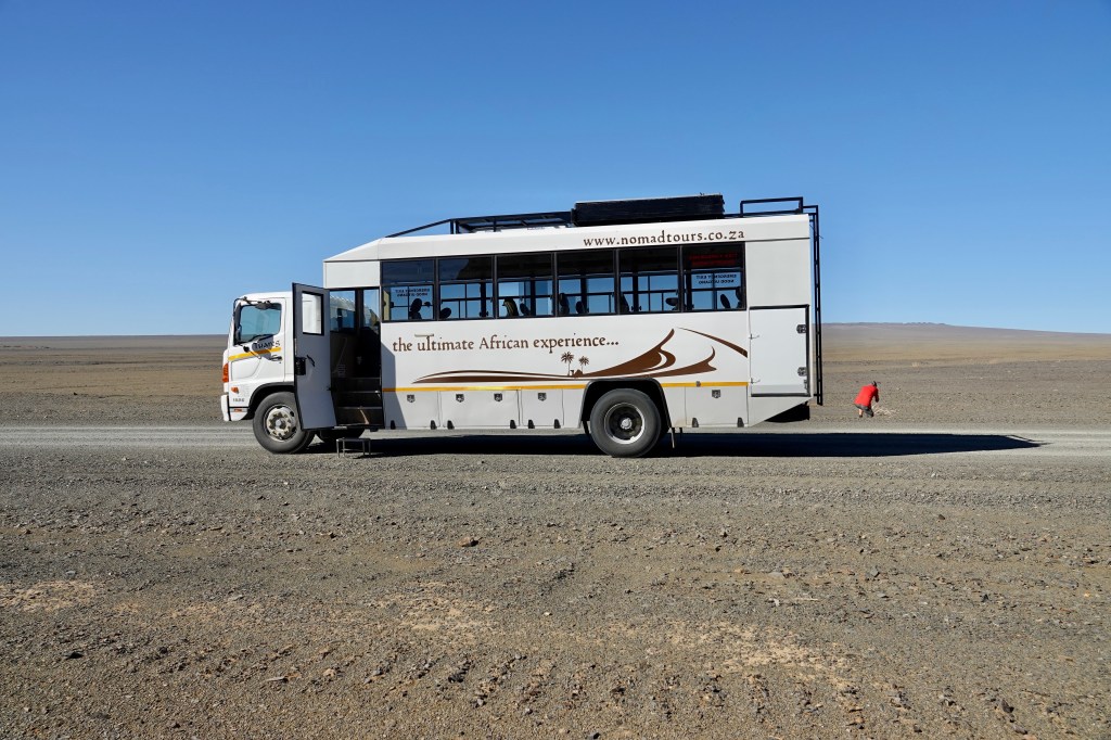 After a quiet night at the hotel we were up early to meet our tour. We are doing a 20 day ‘Cape Town to Victoria Falls’ small group tour with Nomad . With a maximum of 12 tourists on the truck, we found we were starting with only five – plenty of room for all. Apart from us, there is Ross from the central coast of New South Wales and two mates – Kevin and Warren from Cape Town. All good folks and the group bonded very quickly over buying Gin for the trip …😊 Apparently two Americans should join us in Swakopomund and two Czechs in Windhoek, giving us 9 for the Botswana and Zimbabwe legs. Completing the team are our guide Helmut and our driver William.