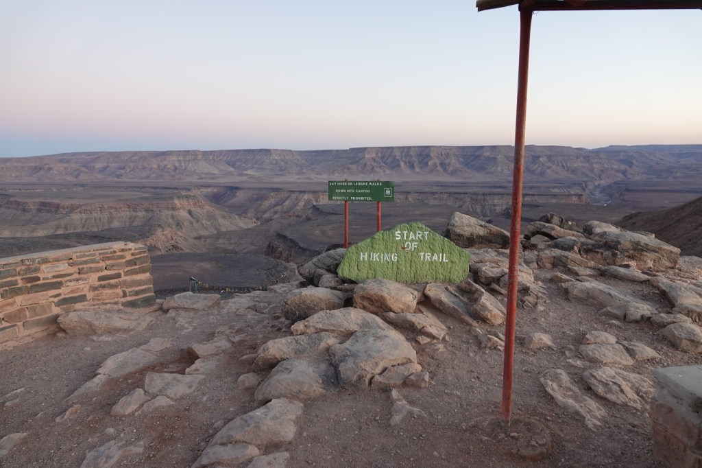 After a walk along the (dry) Fish River riverbed at Ai Ais and a swim in the hot baths it was an early night. We had to be up early for the drive to see the sunrise over the Fish River Canyon – about an hour away.