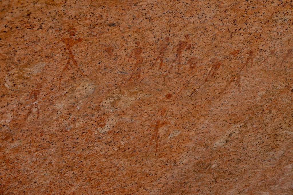 Story goes that a local geologist and naturalist was seeking shelter from the midday heat up in one of the narrow gorges in the Brandenburg Mountains and came across the previously unknown to Europeans painting. He was impressed, made some sketches and noted the location. Eventually the images made their way to Cape Town and were sent onto a French Dude in Europe who had made his name studying ancient cave paintings in France.
