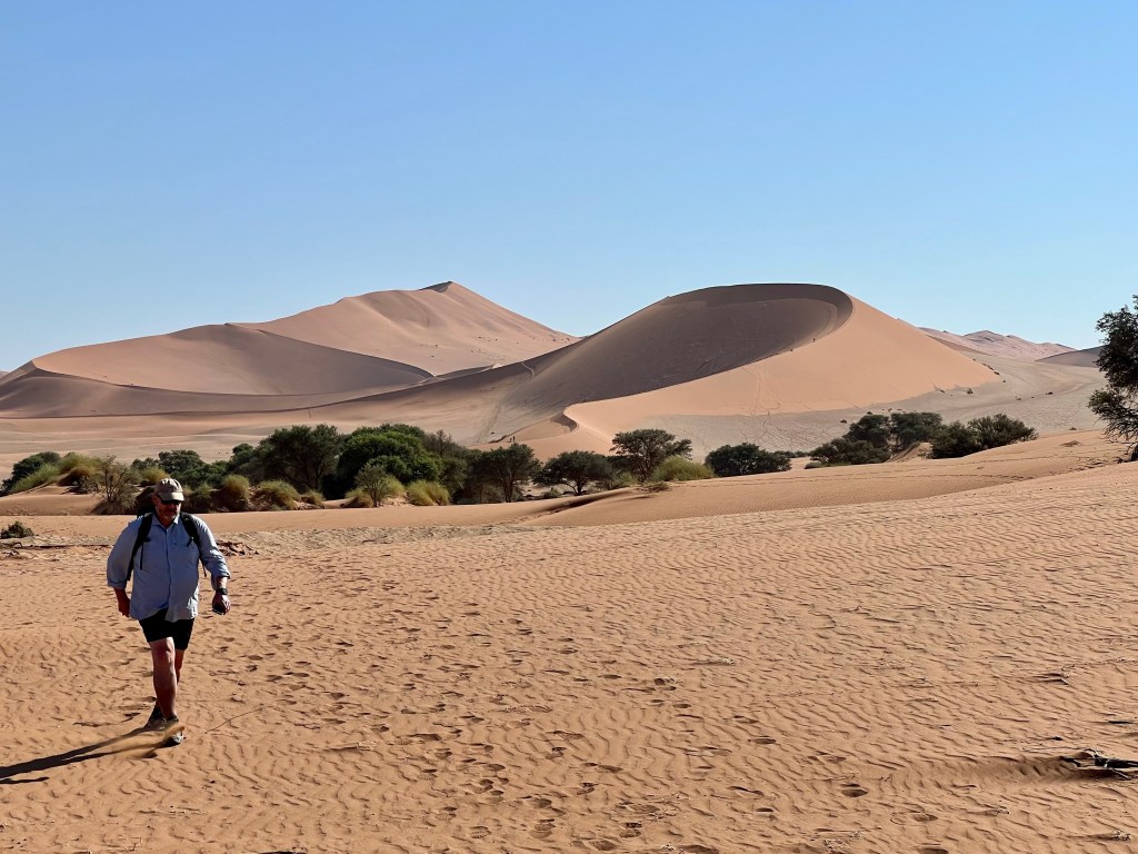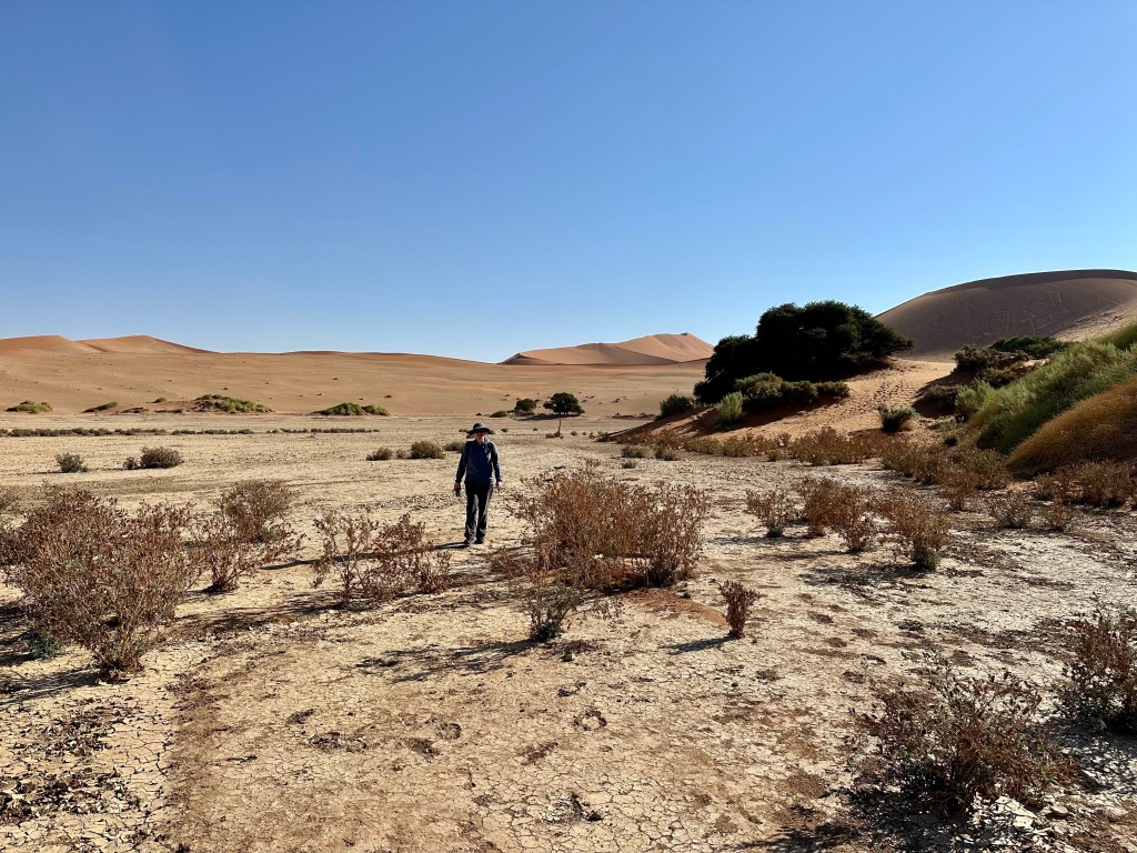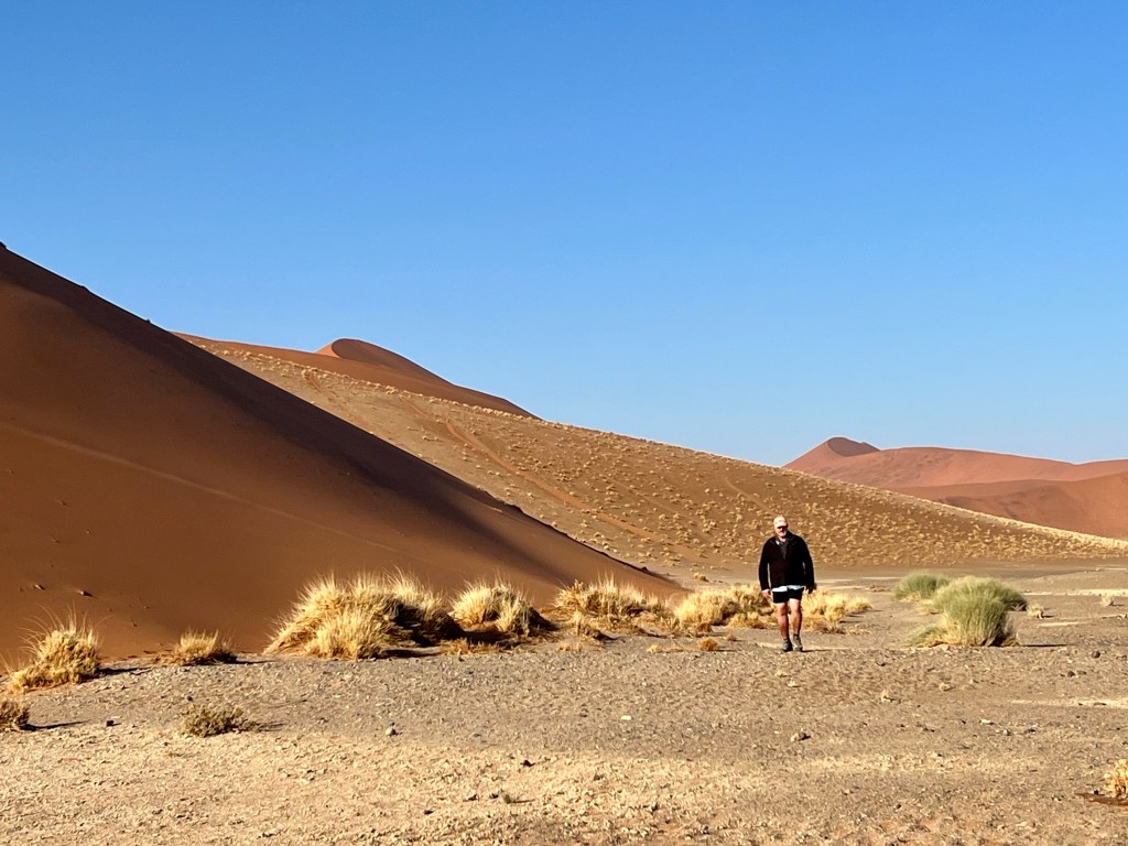 Ness in Sossusvlei Mark heading from Sossusvlei to Deadvlei There was a Black Backed Jackal lurking around the Deadvlei car park