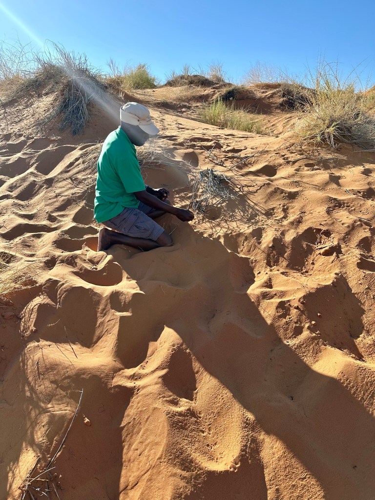 Having the Namib explained by a localBoosman explaining one of the local trapdoor spiders ‘nests’