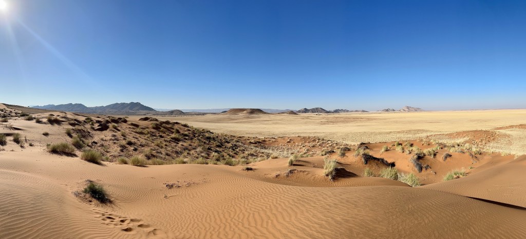 According to our guide the Namib-Nakluft National Park is the largest in the world- covering roughly a gazillionty million square kilometres. Or something like that. The part we were in today was really deserty desert – absolutely bone dry. In fact the air was so dry many of us developed a cough during the day.