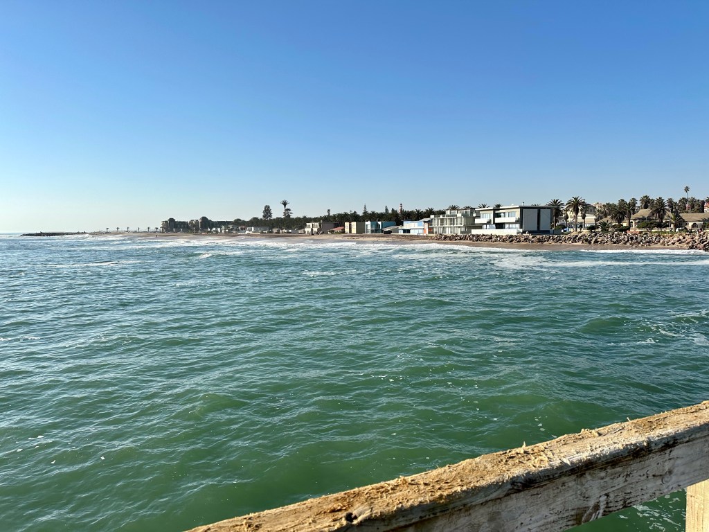 Looking back at Swakopmund from out on the pierLooking south along the coast from the pier at Swakopmund