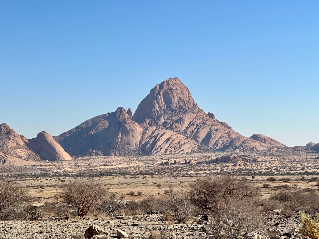 After an hour on tar roads heading back through the desert in the general direction of Windhoek we turned north-ish onto yet another crappy and corrugated dirt road. Our destination was Spitzkoppe, which we could see on the horizon.
