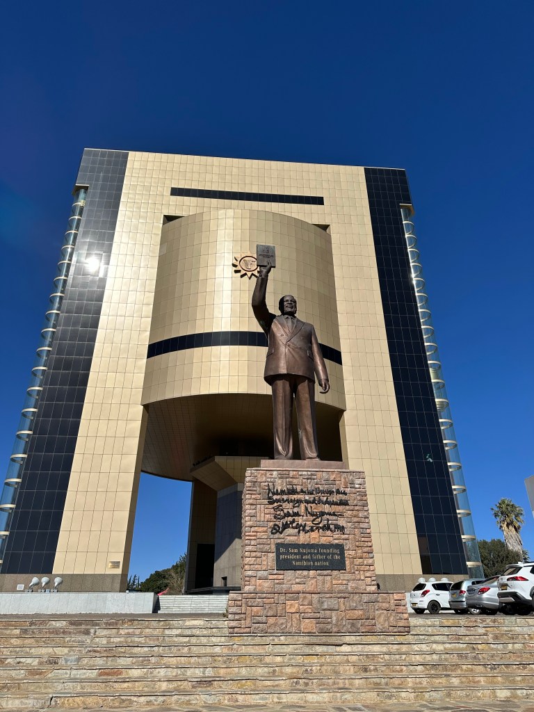 Make good tour of Lutheran Church for benefit of tourism The ‘Coffee Machine’ built by the North Koreans. Statue in front is of Namibia’s first President, Sam Nujoma