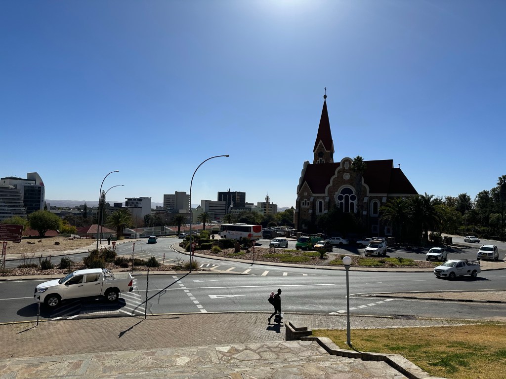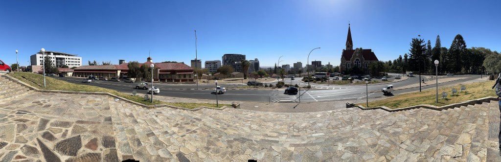 Windhoek is a city of (an estimated) 500,009 people situated in a bowl in some ranges at an altitude of around 1,655 metres above sea level . You probably wouldn’t call it ‘charming’ , but it’s not super ugly either. A ‘highlight’ pointed out as we drove into the CBD (and maybe only 5km from it) was a large abattoir and meat processing plant. You get the drift. It was also a weird feeling being back in a city with traffic after the sparsely occupied Namibian bush.