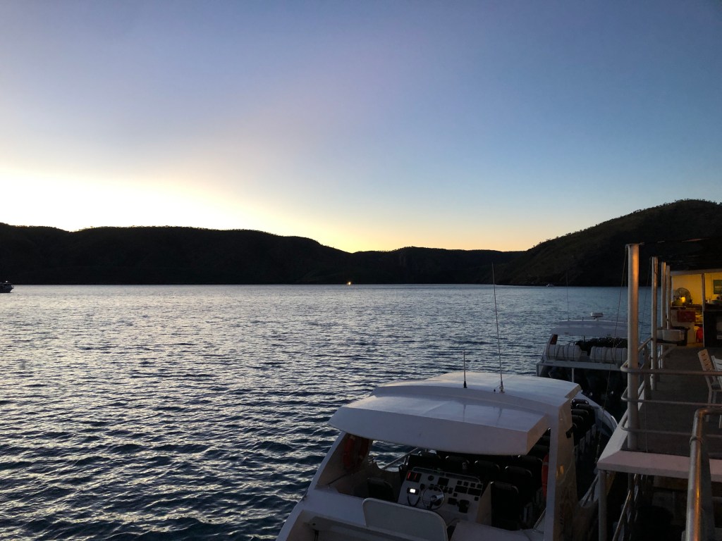 Then it was time for a quick sunset trip up ‘Cyclone Creek’ prior to a dinner of BBQ Barra on the top deck of the pontoon.