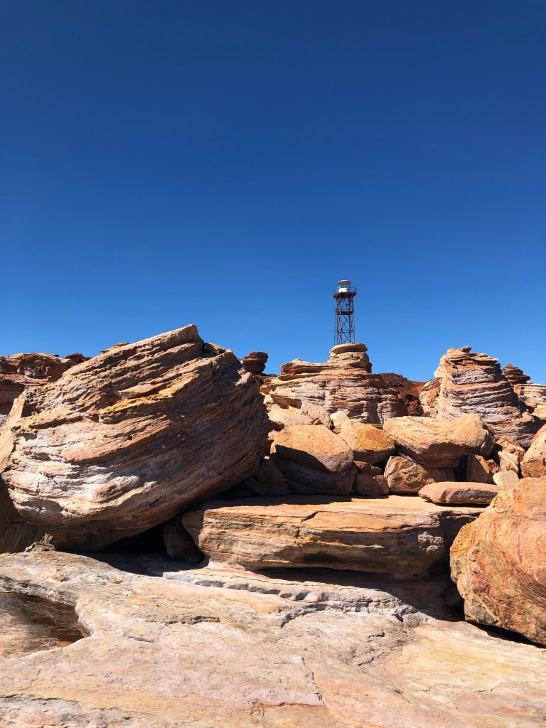 Four days checking out Broome ( takes 5 minutes actually…🙄) then just chilling. Sunset at Cable Beach , walk through ‘old’ (😂 since when is the late 2000’s old?🤔🤔🤔) Chinatown, lunch at Matso’s and a scramble over rocks to totally not see or find dinosaur footprints at Point Gantheaume . Although there was a cool Osprey occupying a nest in the lighthouse structure.