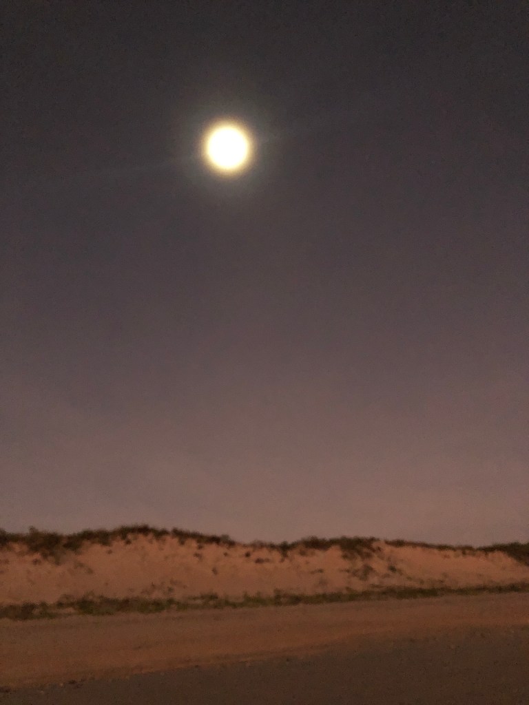 After dinner a long walk on the beach , the sunset really lingering. Then a very moon lit walk back.