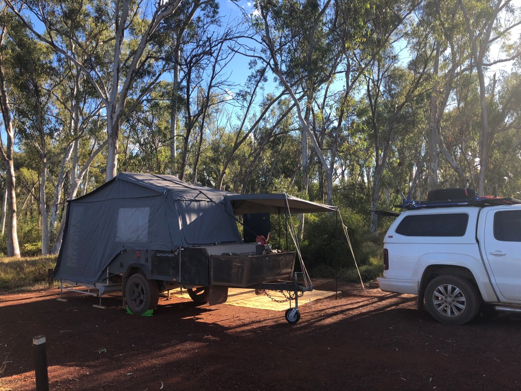 So, we chock the wheels, get the jack and jack up the trailer arm, fix the jockey wheel in place and assess. Turns out we were in a ok -ish situation. Everything muddy, but still apparently intact. Just no pin. As we were assessing the merits of using a D- Shackle , Lucas turns up on his way out of the park and offers large bolt and nut which will do the job. Legend. Then Peter and Simone turn up with a spare pin. Double legends. We were on the way again within 30 minutes of the incident. Thanks to the team who offered help!😀