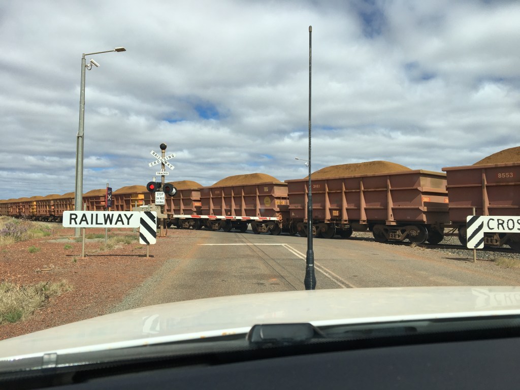 A bit of a sleep in on Wednesday morning ( 7am)… although dawn is also arriving a little later as we have come a fair way further south and west from the last few weeks. Plan was to double back to the northern end of the park , do some walking and then have a dip in the Python Pool waterhole. Plan came unstuck when we reached the Roebourne – Wittenoom road to see a ‘road closed’ sign . A one hour return drive to that point for naught. We did get to see a massive ore train heading from Tom Price to Dampier as we waited nearly 15 minutes for it to pass across the highway. These are seriously long trains!