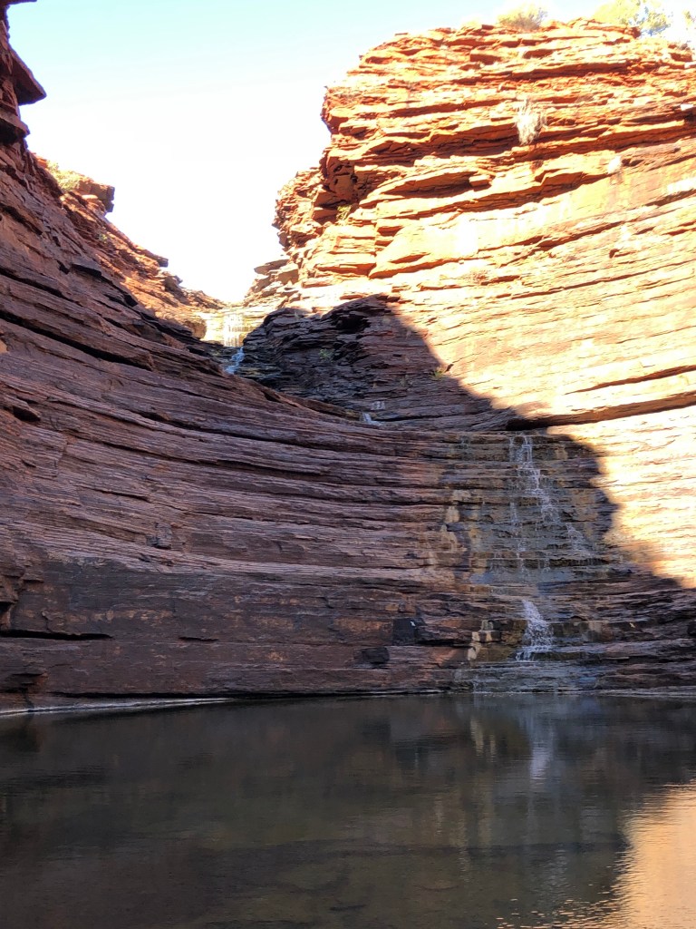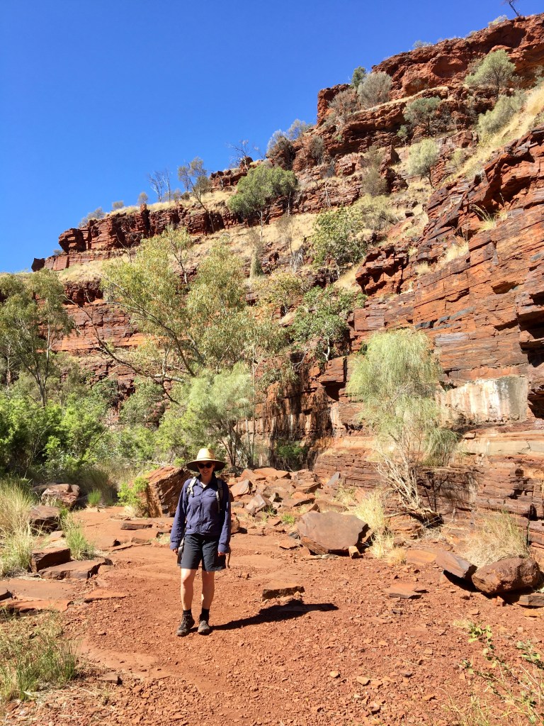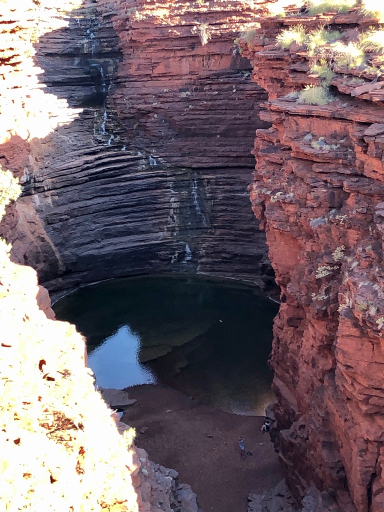 Highlights included the scramble and wade into Joffre , freezing morning swim below the waterfall in Joffre, Knox Gorge, all of Kalamina Gorge and the walk through Dales and swimming at Fortescue ( we were ‘swimmed out ‘ by the time we got to Fern Pool). Slight disappointment in that Mark had a touch of gastro 🤢 the afternoon we were to do Hancock Gorge , so we waved that off. And the Circular Pool is now only visible from the lookout – the walk in is closed do to the threat of falling rocks from unstable cliffs either side.