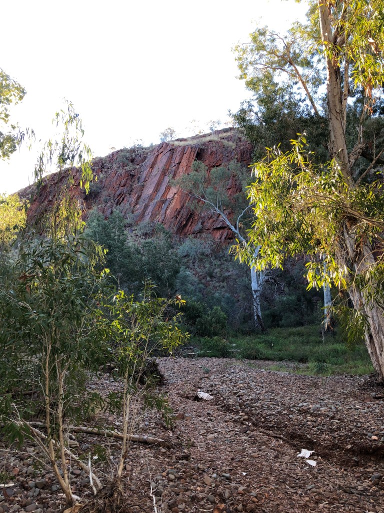 The ‘rok near the ‘wall’Approaching the ‘Wall’ on the walking path , Cheela Plains Station Ness on the walk inThe ‘Wall’The ‘Mussel Pool’, Cheela Plains Station Percentie Falls ( dry 🙄)Above Perentie FallEvening walk down the Beasley River bedMonday night campfire – grilled rump steak and broccolini done right !