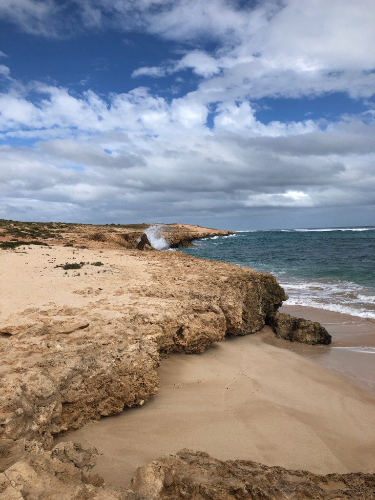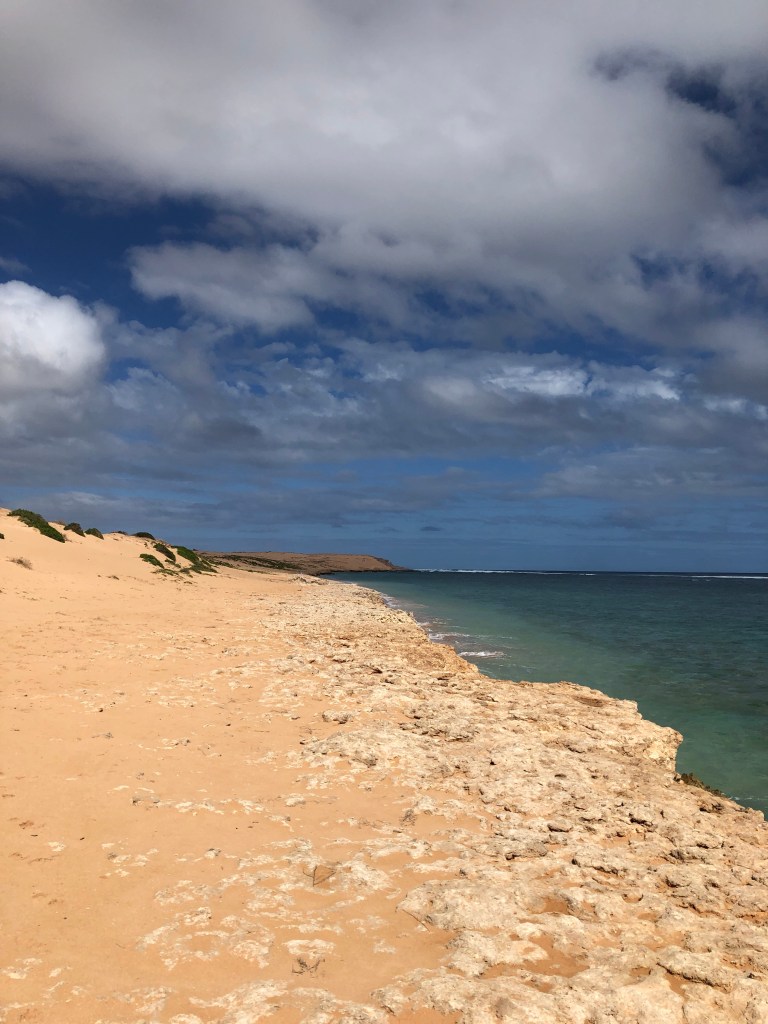 Leaving the Pilbara, we had a relatively uneventful drive ( less broken windscreen 🙄) to in Exmouth mid-afternoon on Wednesday. It is peak season and the town was full to the gills… there was even overflow camping occurring on the town’s sports oval. But Exmouth is less about the town and more about the natural wonders around it – most specifically the Cape Range National Park and the adjacent World Heritage listed Ningaloo reef ( apparently the world’s largest fringing reef). The area has a long human history too. We acknowledge the traditional owners , the Jinigudera people and pay our respects to their elders, past, present and emerging. European contact with the area began with the Dutch around the 1600s.