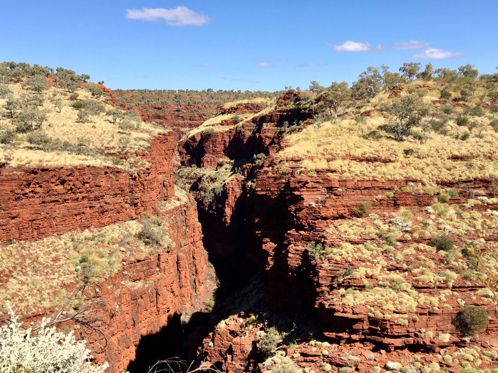 Departing Tom Price ( a nice enough looking place for a company mining town) we spent four days in Karijini National Park. The Park sits astride the lands of the Kurrama, Martijda Banyjima, Miliyuranpa Banyjima and Yinhawanka peoples. We acknowledge their traditional custodianship and pay our respects to their elders, past, present and emerging.