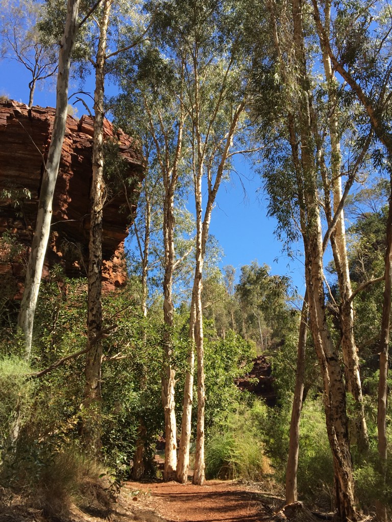 Paperbarks on Ness’ morning walk Morning view over the riverOne of many ore trains on the Rio Tinto private road side to Tom Price