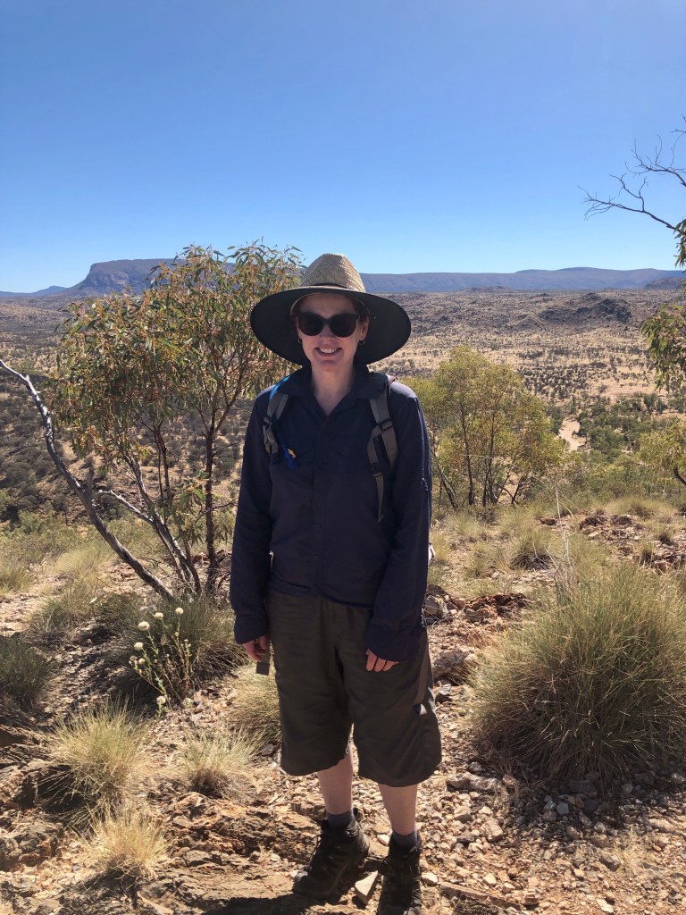 Up early Sunday morning to get a walk in prior it getting too hot to be pleasant. We ended up doing a return walk smidge under 10km to a place above the first gorge called Pat’s Lookout. No info provided on who Pat was… how do you get a place named after you, but no one cares to explain? (Mark does love an interpretive panel… much to Ness’ ongoing boredom 😐)