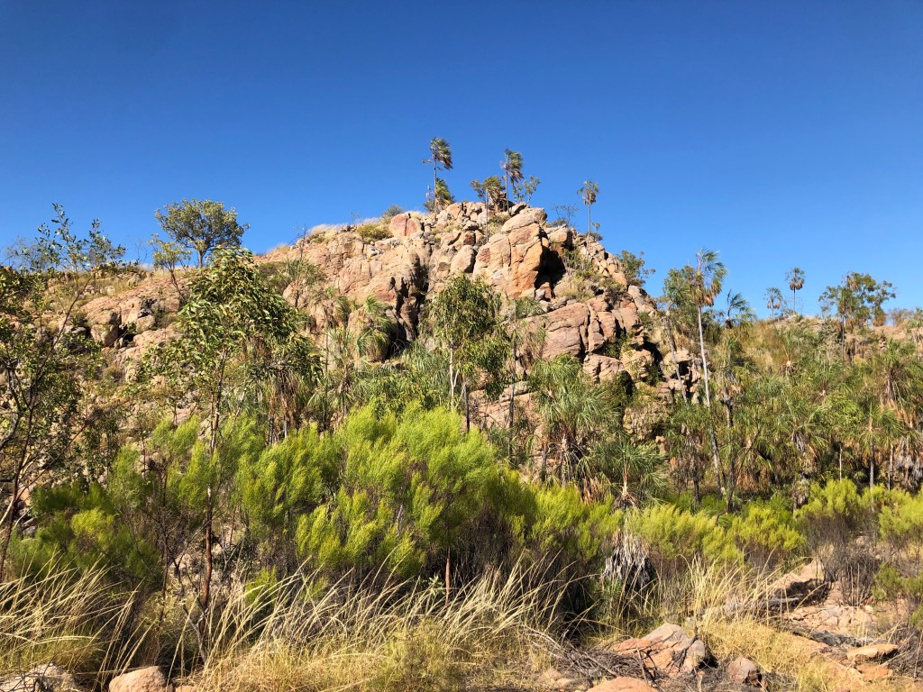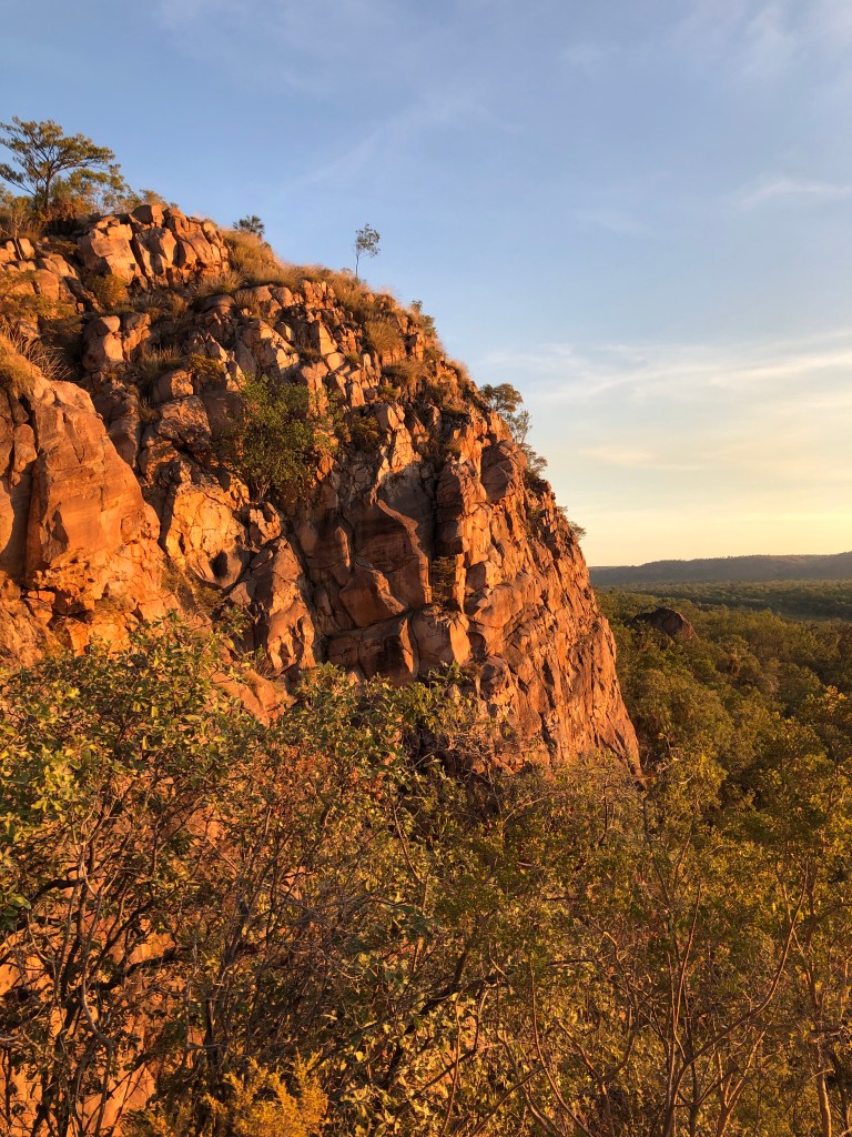 Monday began ( after two espresso coffees , of course) with a pleasant walk up and around the escarpment- memories of our Jatbula Trip three years ago….even insomuch as it was getting a bit toasty as we got back .