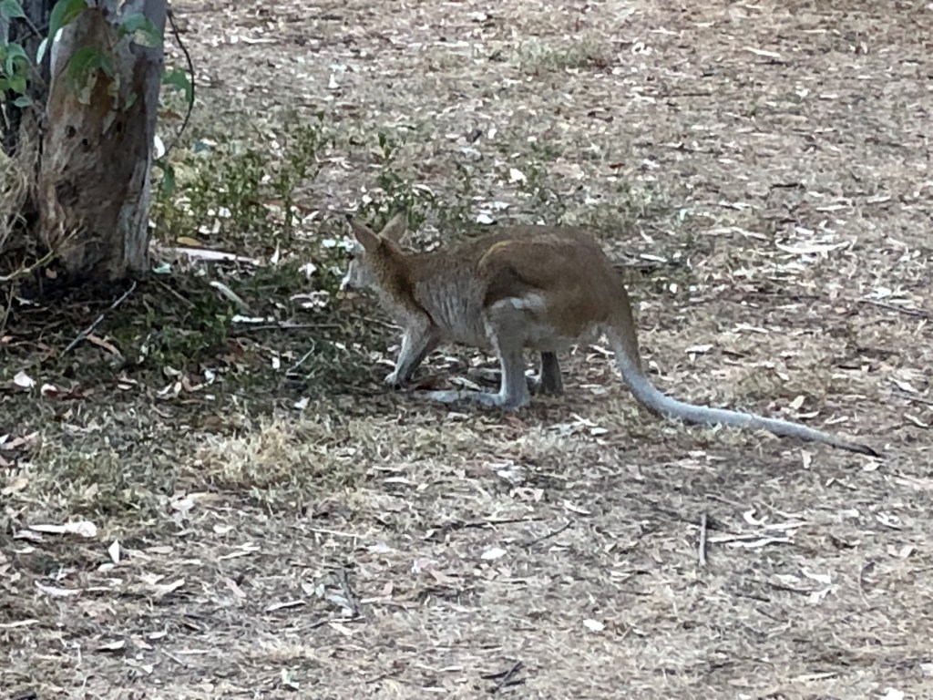 An Agile Wallaby that dropped in for its breakfast as we had our morning coffee